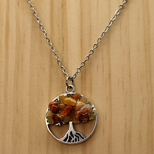 DIVERS COLLIERS + PENDENTIFS ARBRES DE VIE EN PIERRE AVENTURINE ORANGE - BIJOUX ARTISANAUX, UNIQUES & ORIGINAUX