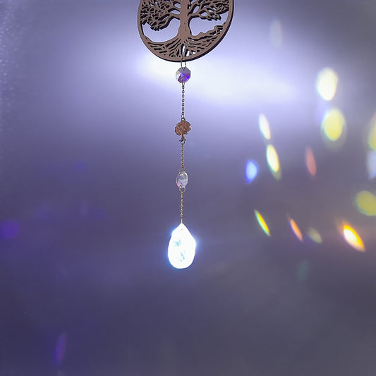 DÉCORATION SUNCATCHER 7 CHAKRAS EN PIERRES + ARBRE de VIE EN BOIS - ATTRAPE SOLEIL UNIQUE, ARTISANAL & ORIGINAL