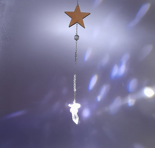 DÉCORATION SUNCATCHER ÉTOILES EN BOIS + ANGES 7 CHAKRAS - ATTRAPE SOLEIL UNIQUE, ARTISANAL & ORIGINAL