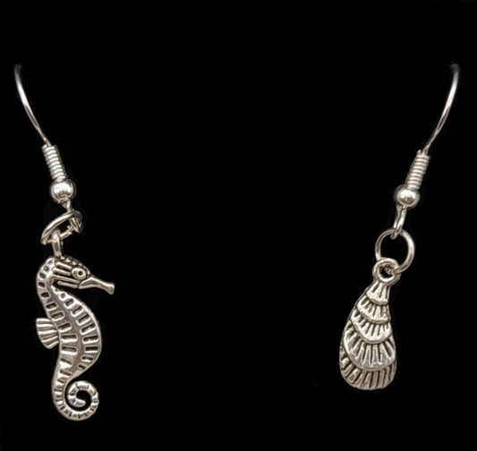 BOUCLES D'OREILLES DUO ORIGINAL " COQUILLAGE + HIPPOCAMPE " - BIJOUX FANTAISIES VACANCES