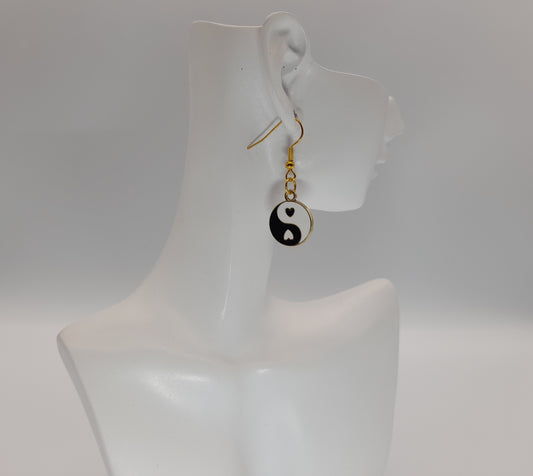 BOUCLES D'OREILLES " YIN YANG 2 COEURS " - BIJOUX FANTAISIES ORIGINAUX
