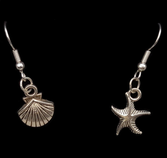 BOUCLES D'OREILLES DUO ORIGINAL COQUILLAGES + ÉTOILE DE MER - BIJOUX FANTAISIES VACANCES