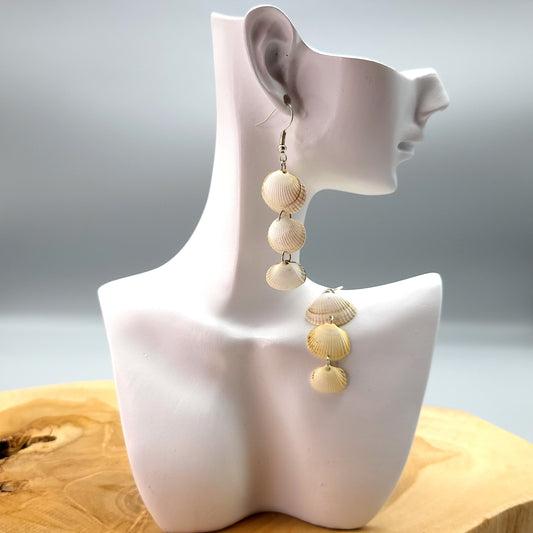 BOUCLES D'OREILLES + 3 COQUILLAGES (VRAIES COQUES) - BIJOUX FANTAISIES UNIQUES, ORIGINAUX & ARTISANAUX