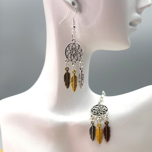 GRANDES BOUCLES D'OREILLES ZEN " ATTRAPES RÊVES + PLUMES D' ANGES - BIJOUX FANTAISIES ORIGINAUX 2 MODÈLES AU CHOIX