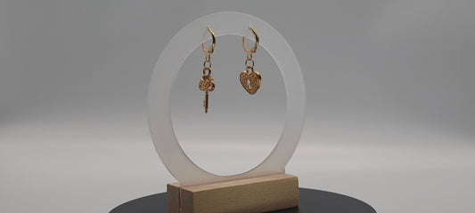BOUCLES D'OREILLES DUO ORIGINAL COEUR ET SA CLÉ - BIJOUX FANTAISIES ORIGINAUX