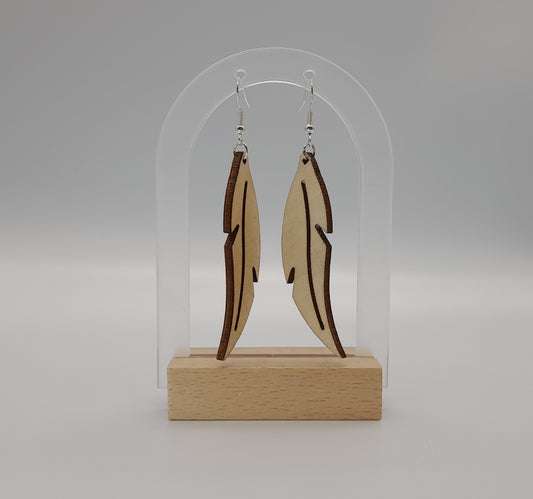 GRANDES BOUCLES D'OREILLES DE PLUMES D' ANGES EN BOIS - DIVERS MODÈLES UNIQUES, ORIGINAUX & ARTISANAUX