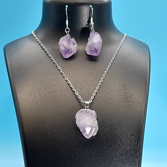 2 PARURES EN PIERRE AMÉTHYSTE : COLLIER 7 PERLES OU PENDENTIF + BOUCLES D’OREILLES - BIJOUX ARTISANAUX, UNIQUES & ORIGINAUX
