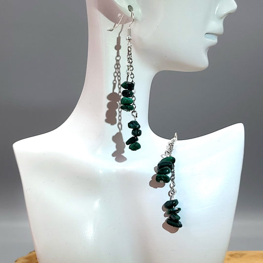 3 MODÈLES DE BOUCLES D'OREILLES PERLES RONDES EN PIERRE DE MALACHITE - BIJOUX ARTISANAUX, UNIQUES & ORIGINAUX