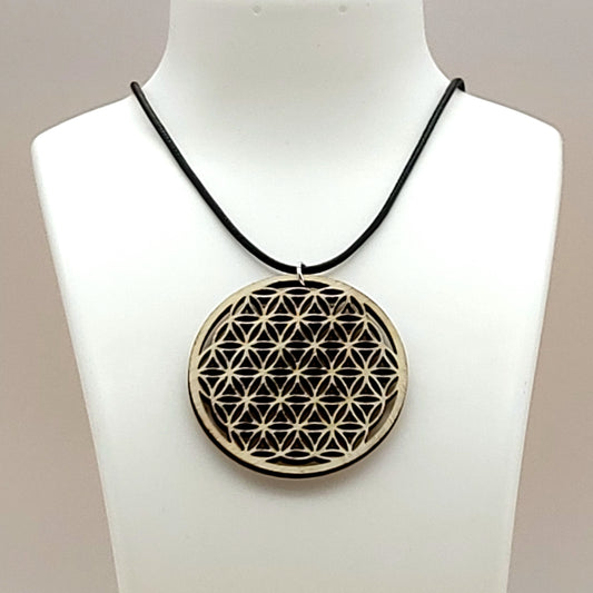 COLLIER + PENDENTIF SYMBOLE FLEUR DE VIE EN BOIS - BIJOU FANTAISIE UNIQUE, ORIGINAL & ARTISANAL