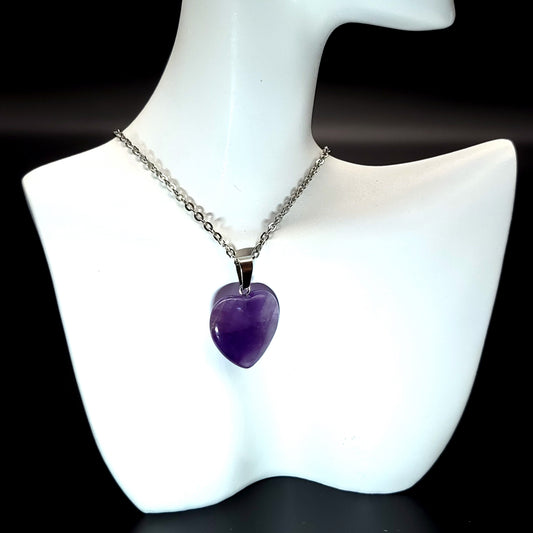 COLLIERS + PENDENTIFS COEURS + ARBRES DE VIE EN PIERRE AMÉTHYSTE - BIJOUX ARTISANAUX, UNIQUES & ORIGINAUX