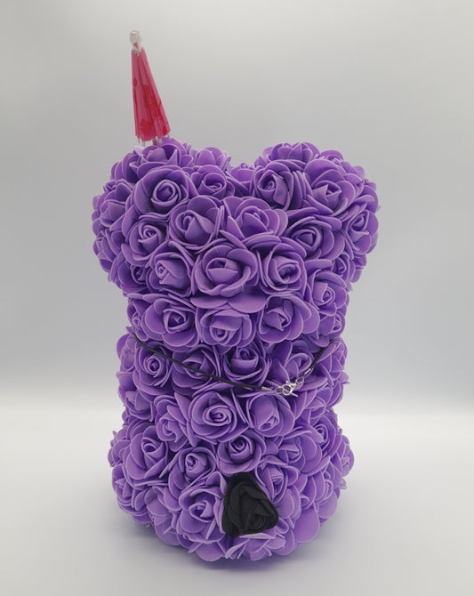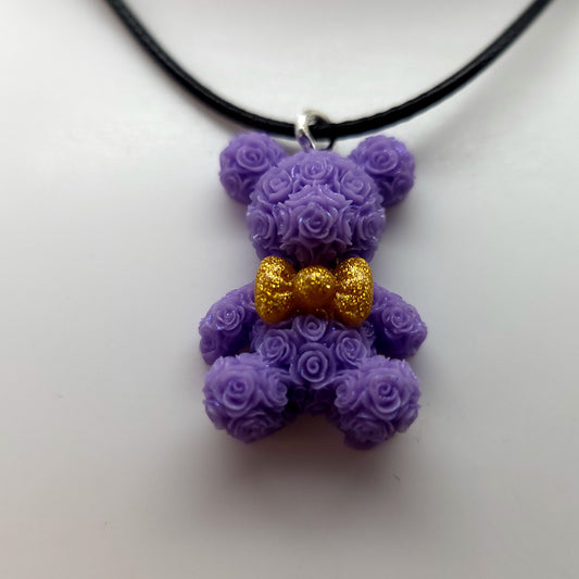 DÉCORATION " 2 EN 1 " JOLI OURSON 3D PROVENCE VIOLET + BIJOU COLLIER FANTAISIE - UNIQUE, ORIGINAL & ARTISANAL
