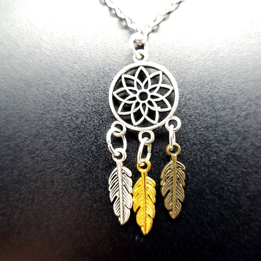 COLLIERS GRANDS PENDENTIFS ZEN " ATTRAPES RÊVES + PLUMES D' ANGES - BIJOUX FANTAISIES ORIGINAUX 2 MODÈLES AU CHOIX