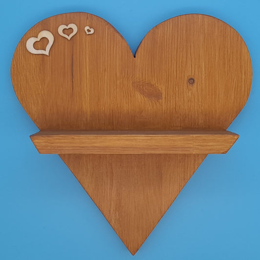 ÉTAGÈRE MURALE COEUR EN BOIS AVEC ENVOL DE 3 COEURS - UNIQUE & ORIGINAL