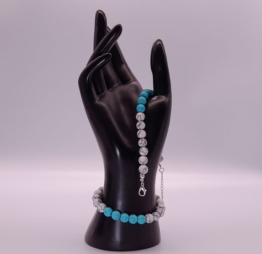 BRACELETS EN DUO DE PERLES RONDES EN PIERRES HOWLITE EN 3 VERSIONS - 2 TAILLES AU CHOIX - BIJOUX ARTISANAUX, UNIQUES & ORIGINAUX