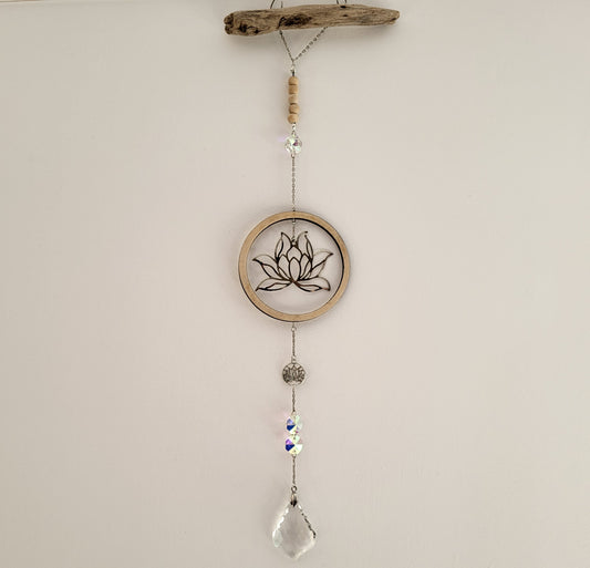 DÉCORATION SUNCATCHER BOIS FLOTTÉ + LOTUS EN MÉTAL N°1 - ATTRAPE SOLEIL UNIQUE, ARTISANAL & ORIGINAL
