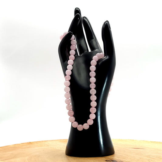GRAND COLLIER COMPLET DE PERLES RONDES EN PIERRE DE QUARTZ ROSE - BIJOU ARTISANAL & UNIQUE
