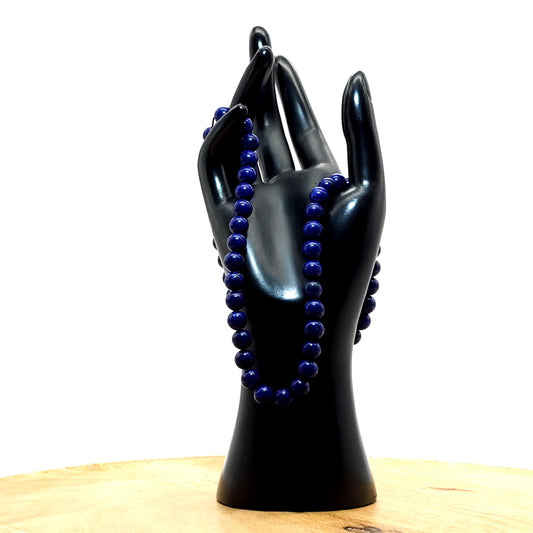 GRAND COLLIER COMPLET DE PERLES RONDES EN PIERRE DE LAPIS LAZULI - BIJOU ARTISANAL & UNIQUE