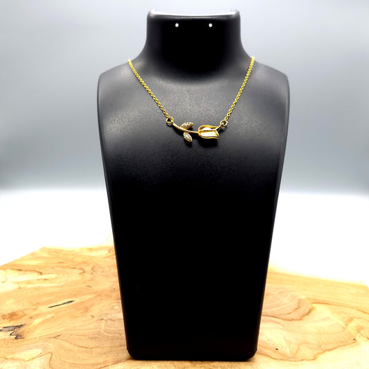 CHAINE DORÉE + FLEUR ROSE + STRASS + BILLE FLUORESCENTE - BIJOU FANTAISIE