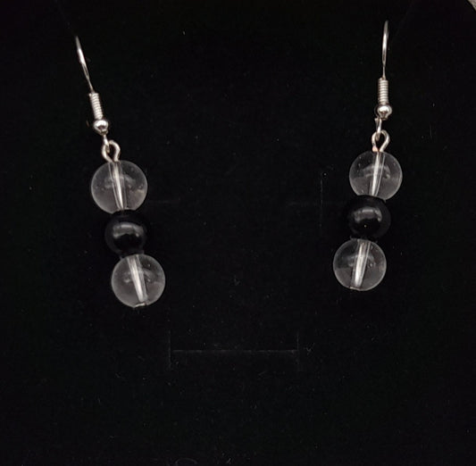 BOUCLES D'OREILLES DUO PIERRES ONYX + CRISTAL DE ROCHE - BIJOUX ARTISANAUX, UNIQUES & ORIGINAUX