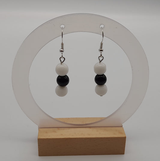 BOUCLES D'OREILLES DUO PIERRES ONYX NOIR & BLANC - BIJOUX ARTISANAUX, UNIQUES & ORIGINAUX
