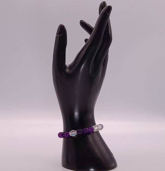 BRACELETS EN DUO DE PERLES RONDES EN PIERRES DE LUNE + AMÉTHYSTE - 2 TAILLES AU CHOIX - BIJOUX ARTISANAUX, UNIQUES & ORIGINAUX