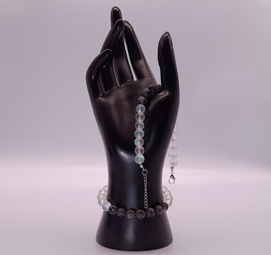 BRACELETS EN DUO DE PERLES RONDES EN PIERRES DE LUNE + LABRADORITE - 2 TAILLES AU CHOIX - BIJOUX ARTISANAUX, UNIQUES & ORIGINAUX