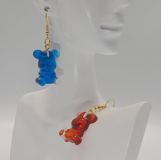 BOUCLES D'OREILLES OURSONS ASSIS BICOLORES AU CHOIX - BIJOUX FANTAISIES UNIQUES, ORIGINAUX & ARTISANAUX