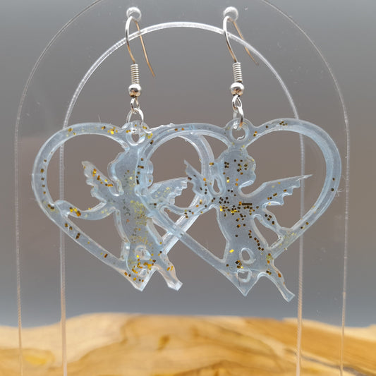 GRANDES BOUCLES D'OREILLES COEURS D' ANGES EN RÉSINE - BIJOUX FANTAISIES UNIQUES, ORIGINAUX & ARTISANAUX, MODÈLES AU CHOIX