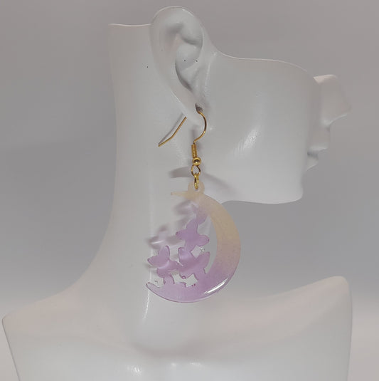 GRANDES BOUCLES D'OREILLES PAPILLONS + SIRÈNE SUR LUNE EN RÉSINE - BIJOUX FANTAISIES UNIQUES, ORIGINAUX & ARTISANAUX