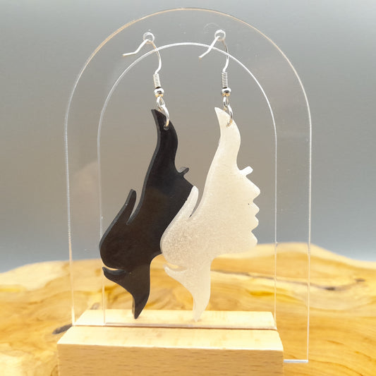 GRANDES BOUCLES D'OREILLES VISAGES EN MIROIR EN RÉSINE - DIVERS COLORIS ARTISANAUX, UNIQUES & ORIGINAUX