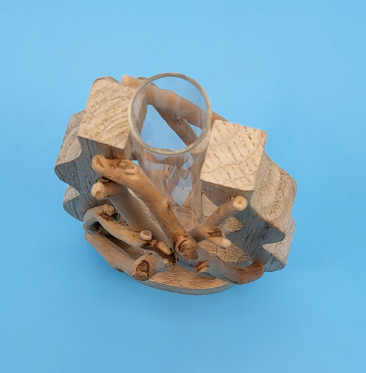DÉCORATION SOLIFLORE EN VERRE + BOIS ÉVASÉ + BOIS FLOTTÉ - ARTISANALE, UNIQUE & ORIGINALE