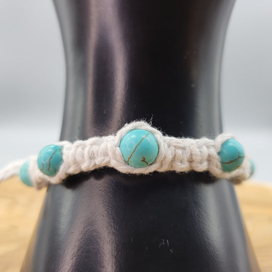 BRACELET MACRAMÉ EN PIERRE DE TURQUOISE - AJUSTABLE & MIXTE, UNIQUE & ARTISANAL