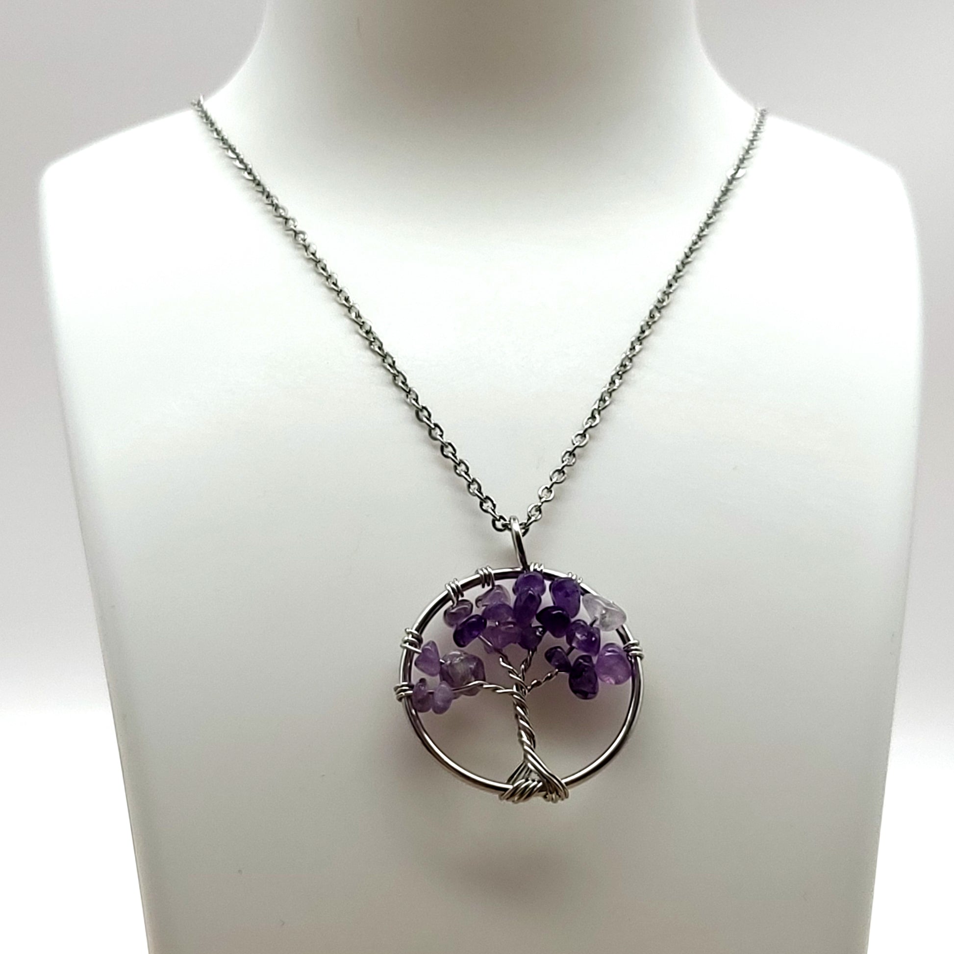 DIVERS COLLIERS + PENDENTIFS ARBRES DE VIE EN PIERRE AMÉTHYSTE - BIJOUX ARTISANAUX, UNIQUES & ORIGINAUX