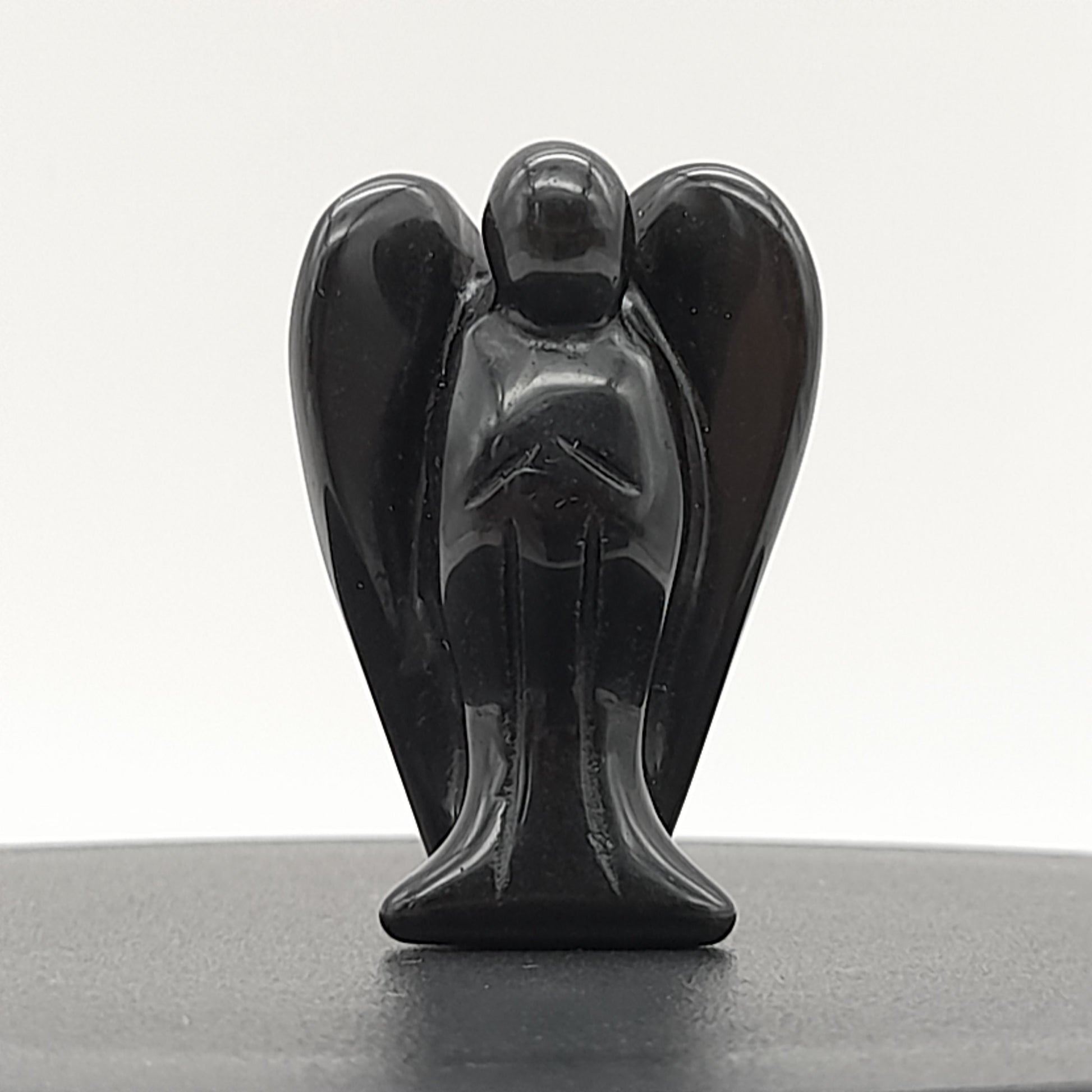 ANGE GARDIEN SCULPTÉ EN PIERRE OBSIDIENNE NOIRE - UNIQUE & ARTISANAL
