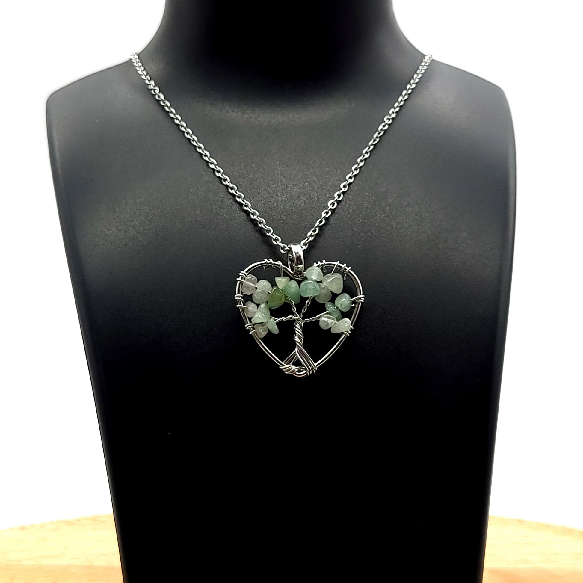DIVERS COLLIERS + PENDENTIFS ARBRES DE VIE EN PIERRE AVENTURINE VERTE - BIJOUX ARTISANAUX, UNIQUES & ORIGINAUX