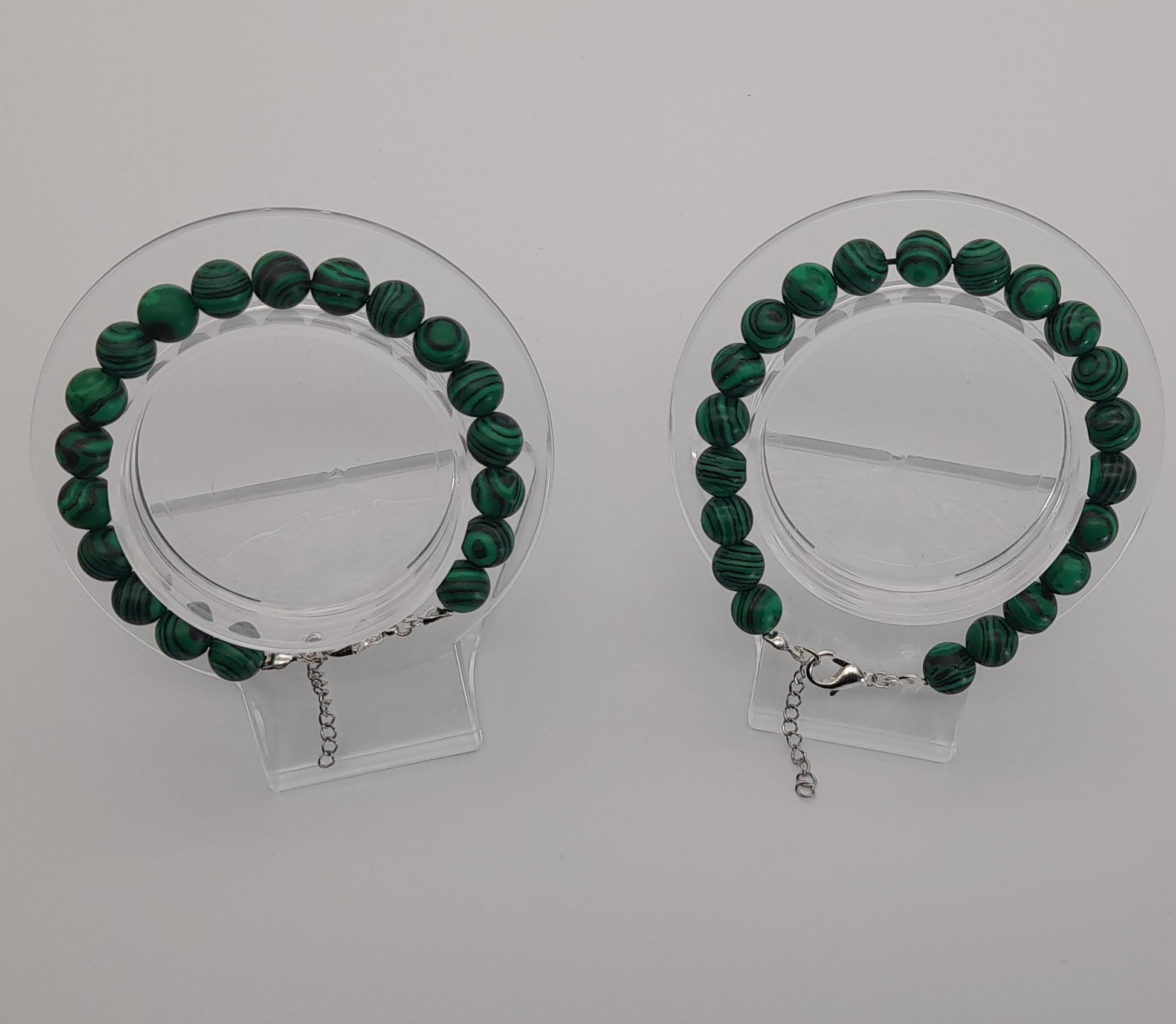 BRACELETS DE PERLES RONDES EN PIERRE DE MALACHITE - 2 TAILLES AU CHOIX - BIJOUX ARTISANAUX, UNIQUES & ORIGINAUX