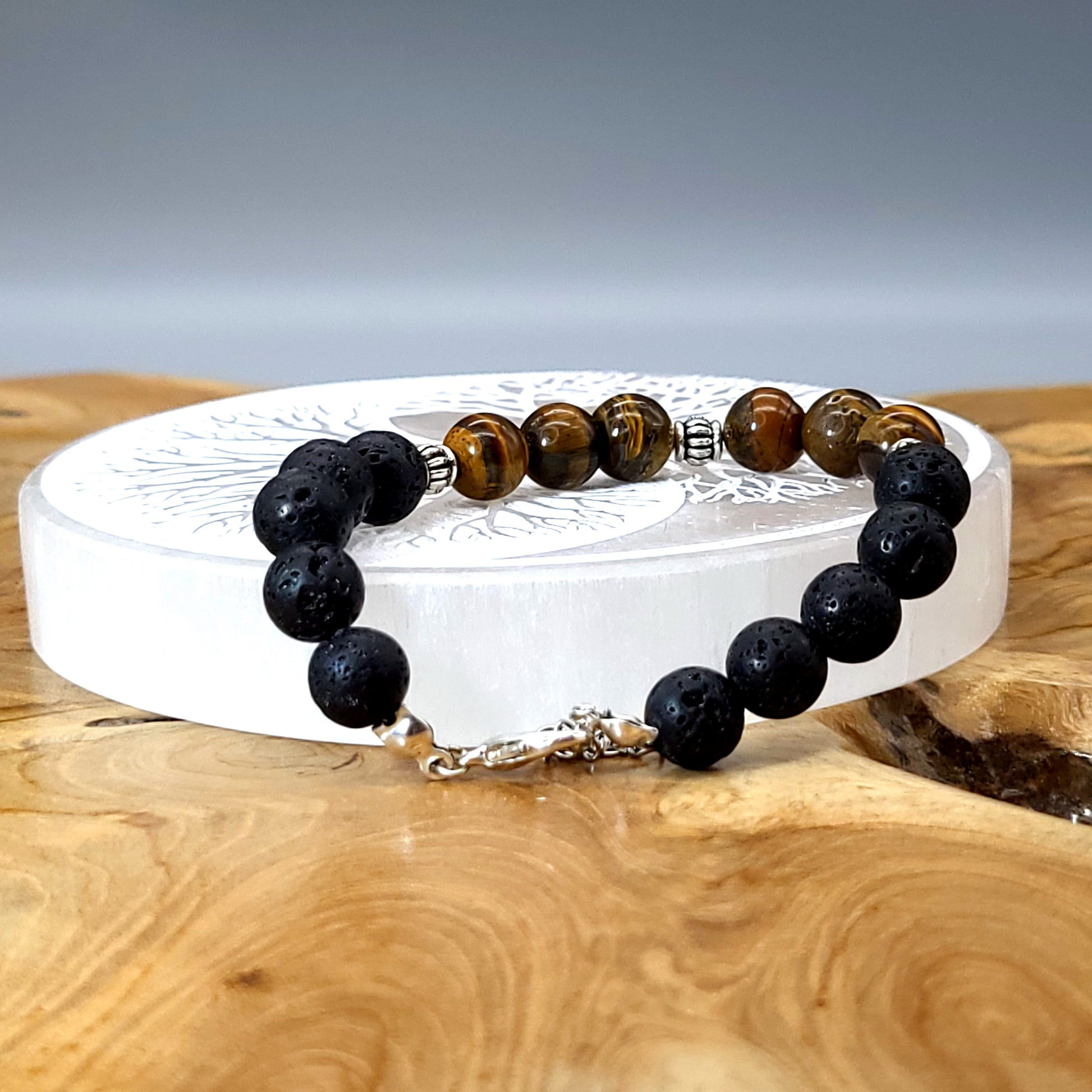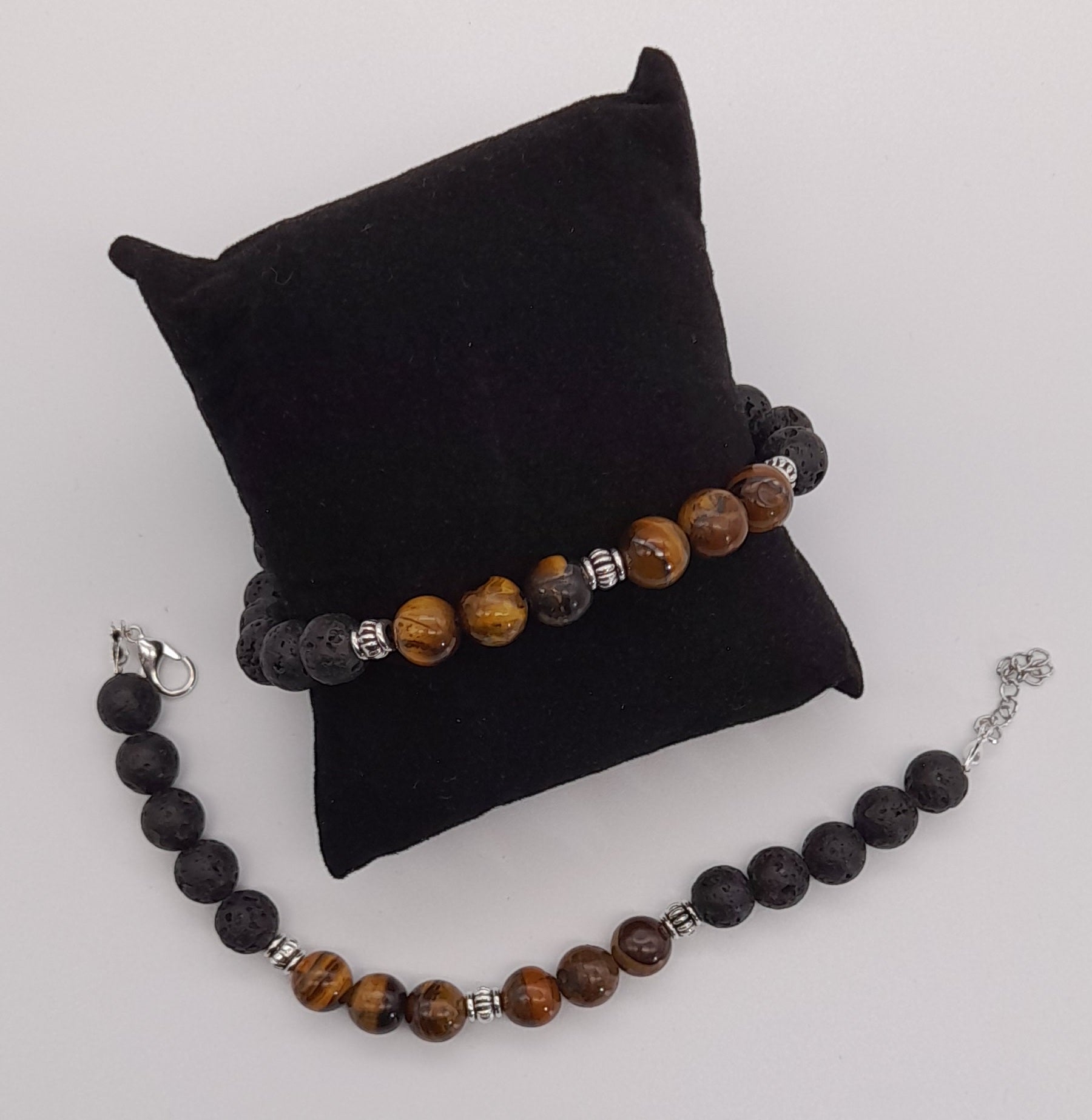 BRACELETS DE PERLES RONDES EN PIERRES DE LAVE + OEIL DU TIGRE - 2 TAILLES AU CHOIX - BIJOUX ARTISANAUX, UNIQUES & ORIGINAUX