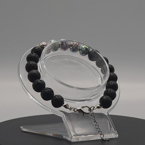 BRACELETS MULTICOLORES DE PERLES RONDES EN PIERRES DE LAVE NOIRES & IRISÉES - 2 TAILLES AU CHOIX - BIJOUX ARTISANAUX, UNIQUES & ORIGINAUX