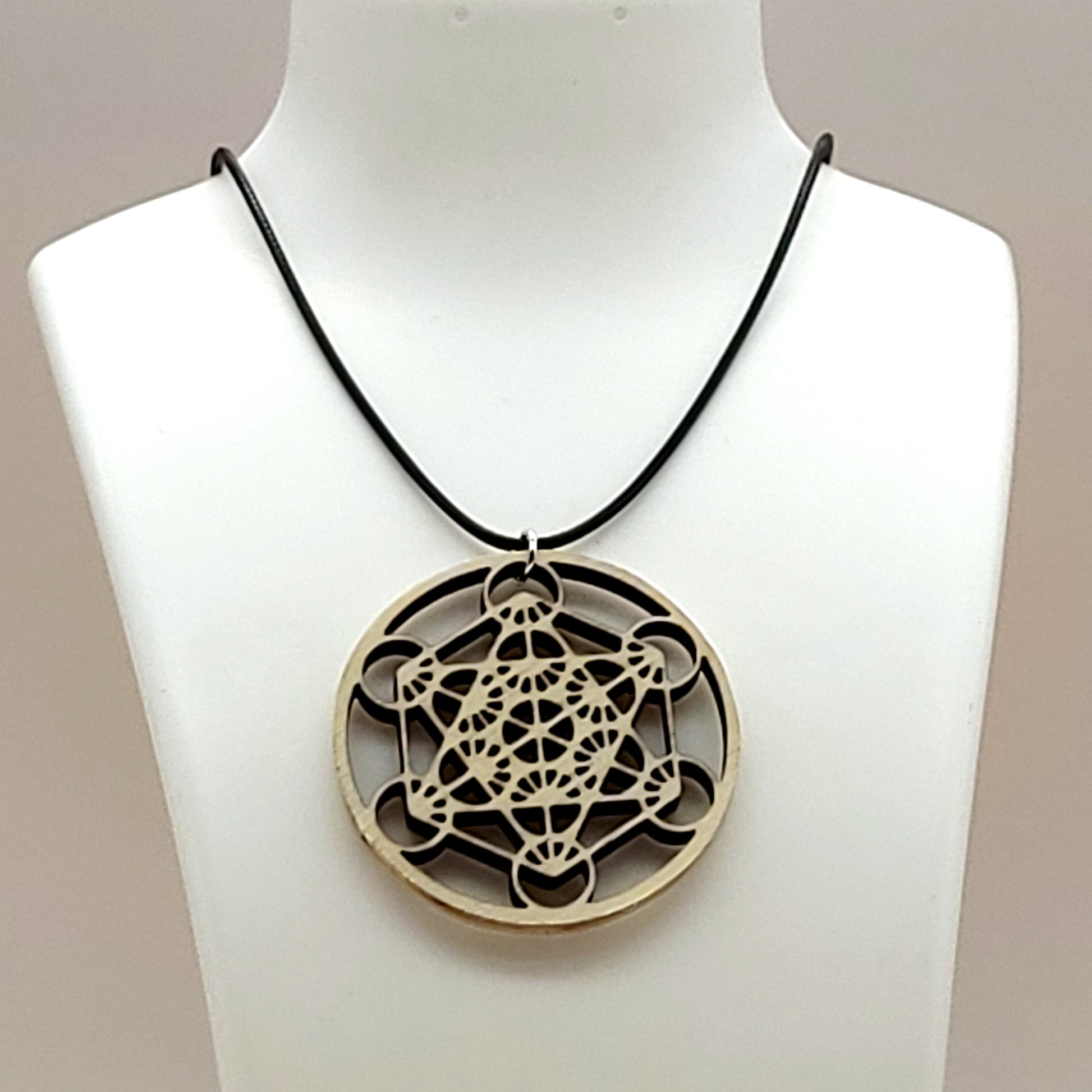 COLLIER + PENDENTIF SYMBOLE METATRON EN BOIS - BIJOU FANTAISIE UNIQUE, ORIGINAL & ARTISANAL