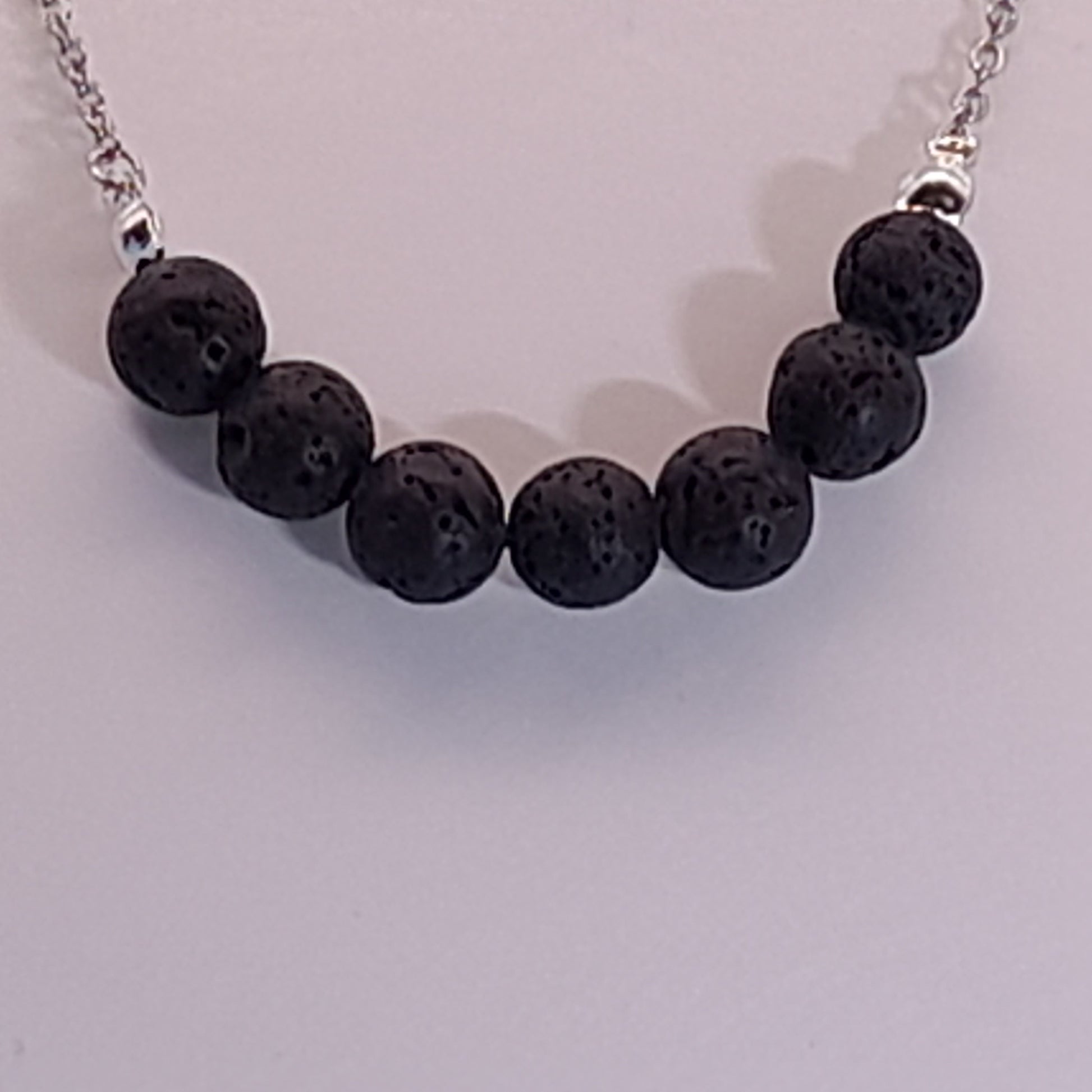 Découvrez ce charmant COLLIER orné de 7 PERLES en PIERRES NATURELLES SEMI-PRÉCIEUSES de PIERRE de LAVE, à la texture UNIQUE de mini cratères volcaniques noirs. Elles sont reliées à une chaîne argentée en acier INOXYDABLE (hypoallergénique), pour vous offrir confort et qualité. Vendue à l'unité, mixte, convenant aussi bien aux femmes qu'aux hommes.