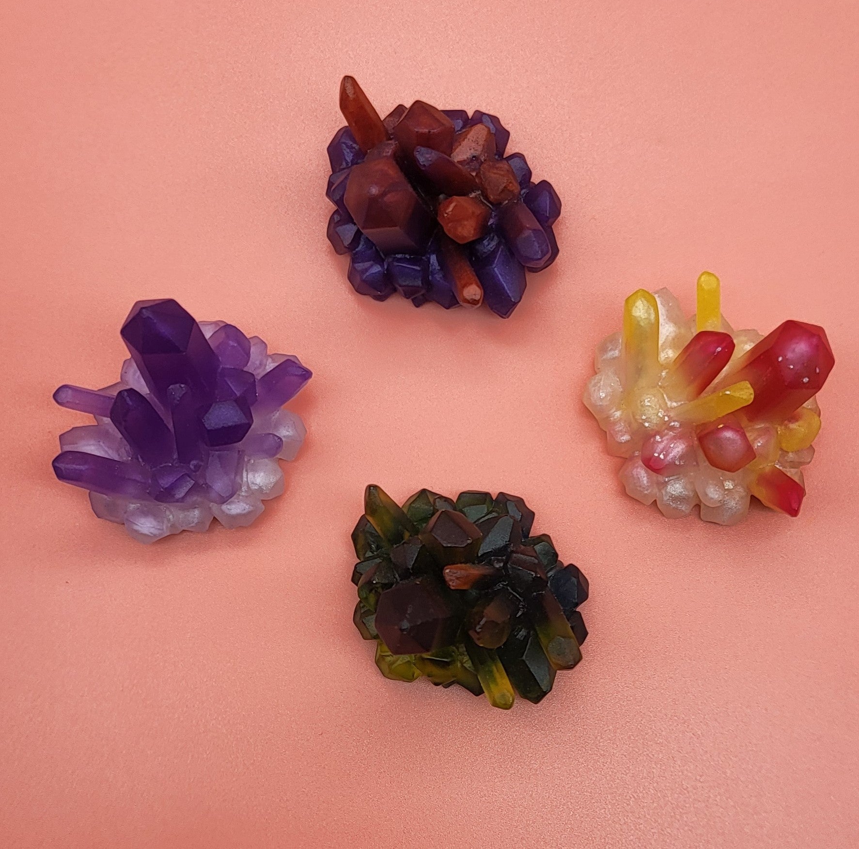DÉCORATION GRAPPE DE CRISTAUX 3D RELIEFS EN RÉSINE - DIVERS COLORIS UNIQUES, ARTISANAUX & ORIGINAUX