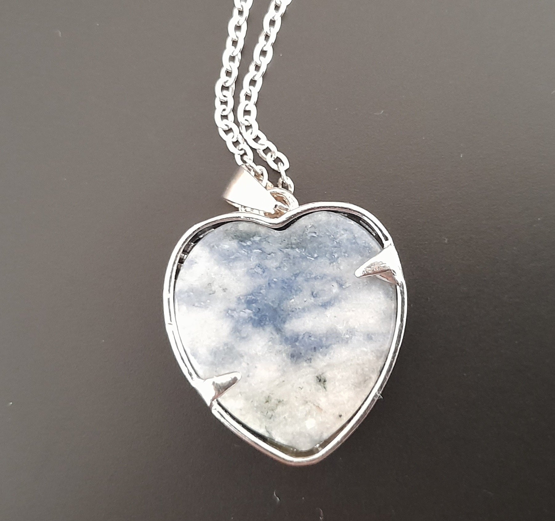 Découvrez ces 2 sublimes versions de COLLIERS avec, chacun un PENDENTIF en forme de CŒUR. Ils sont ornés d’une PIERRE NATURELLE SEMI-PRÉCIEUSE de SODALITE, aux nuances brillantes uniques opaques (coloris bleu, blanc et beige). Chaque pendentif est monté sur une CHAÎNE argentée en acier inoxydable (hypoallergénique), pour offrir confort et qualité. Colliers mixtes vendus à l'unité, convenant aussi bien aux femmes qu'aux hommes.