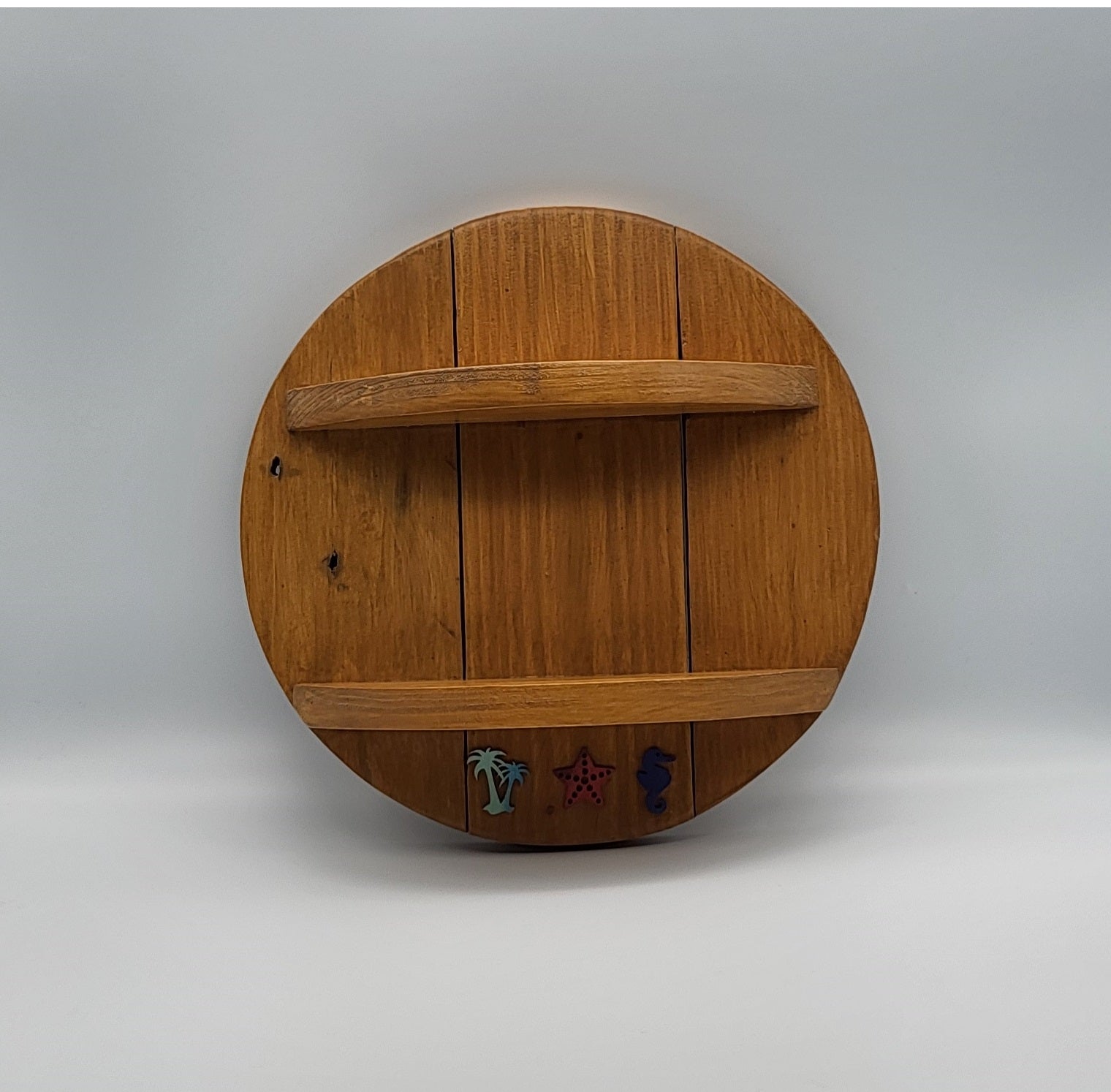 ÉTAGÈRE RONDE VINTAGE UNIQUE EN BOIS DE PALETTE + 2 TABLETTES - MODÈLE ÉCOLO