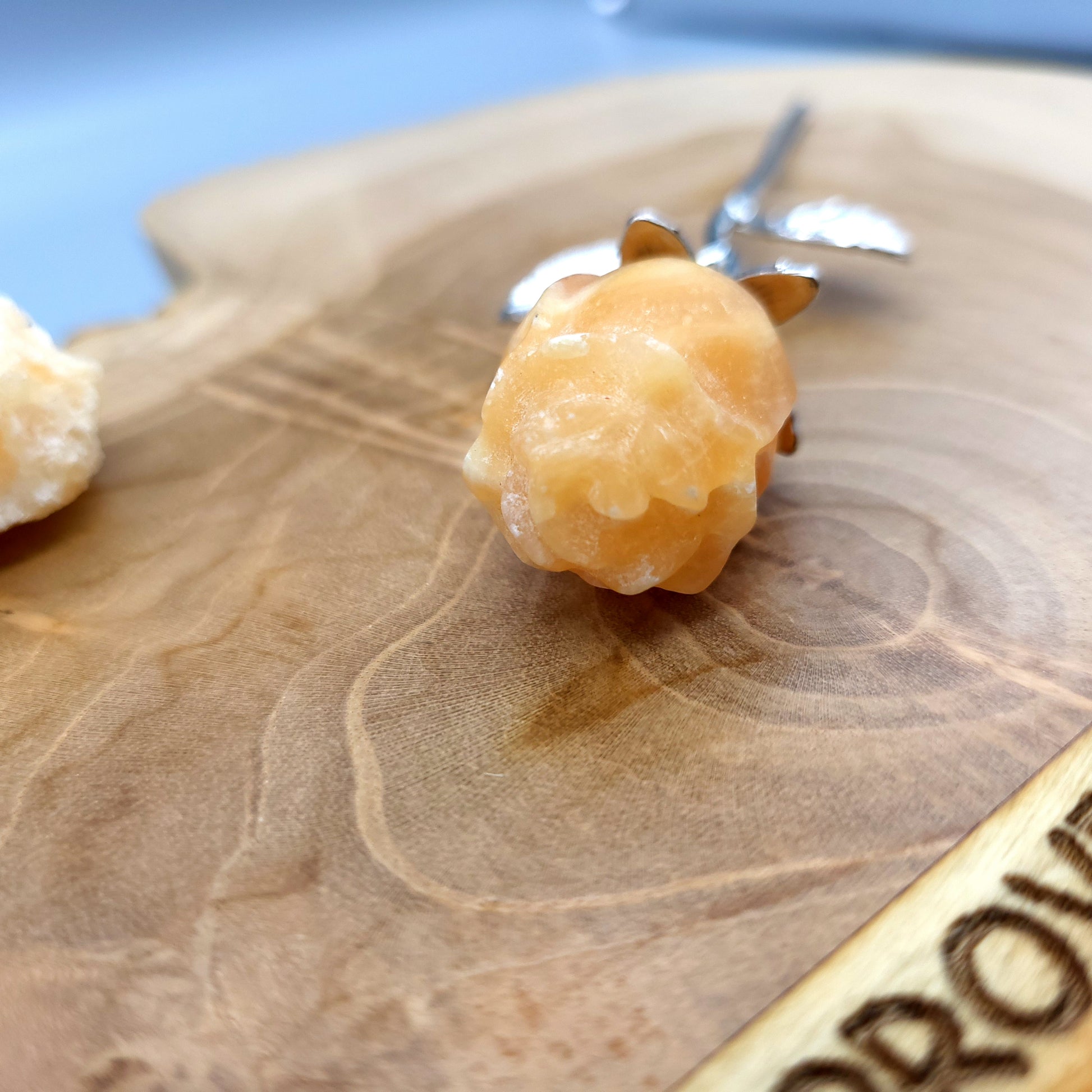 FLEUR " ROSE " EN PIERRE CALCITE JAUNE SCULPTÉE – DÉCORATION ORIGINALE, UNIQUE & ARTISANALE