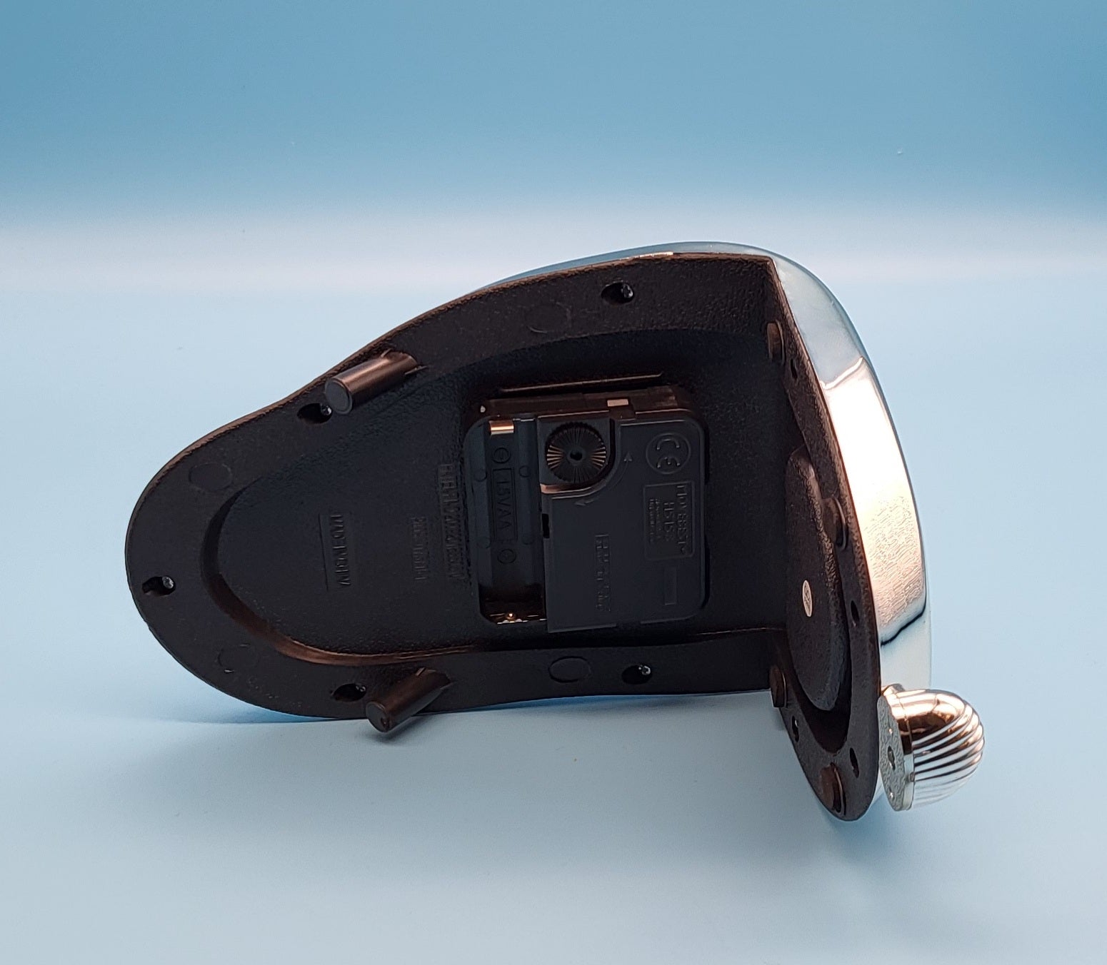Son contour est de couleur ARGENTÉE avec un CADRAN bombé transparent sur fond BLANC, lui conférant un effet de loupe. Ses heures sont en chiffres romains, ses 2 aiguilles sont noires. Son mécanisme est fourni, ainsi qu'un système de patins antidérapants pour la poser sur un coin de meuble (...) car étudiée pour épouser un angle à 90° (standard). Etant conçue en PVC solide pour qu'en cas de chute...elle s'en sorte indemne !