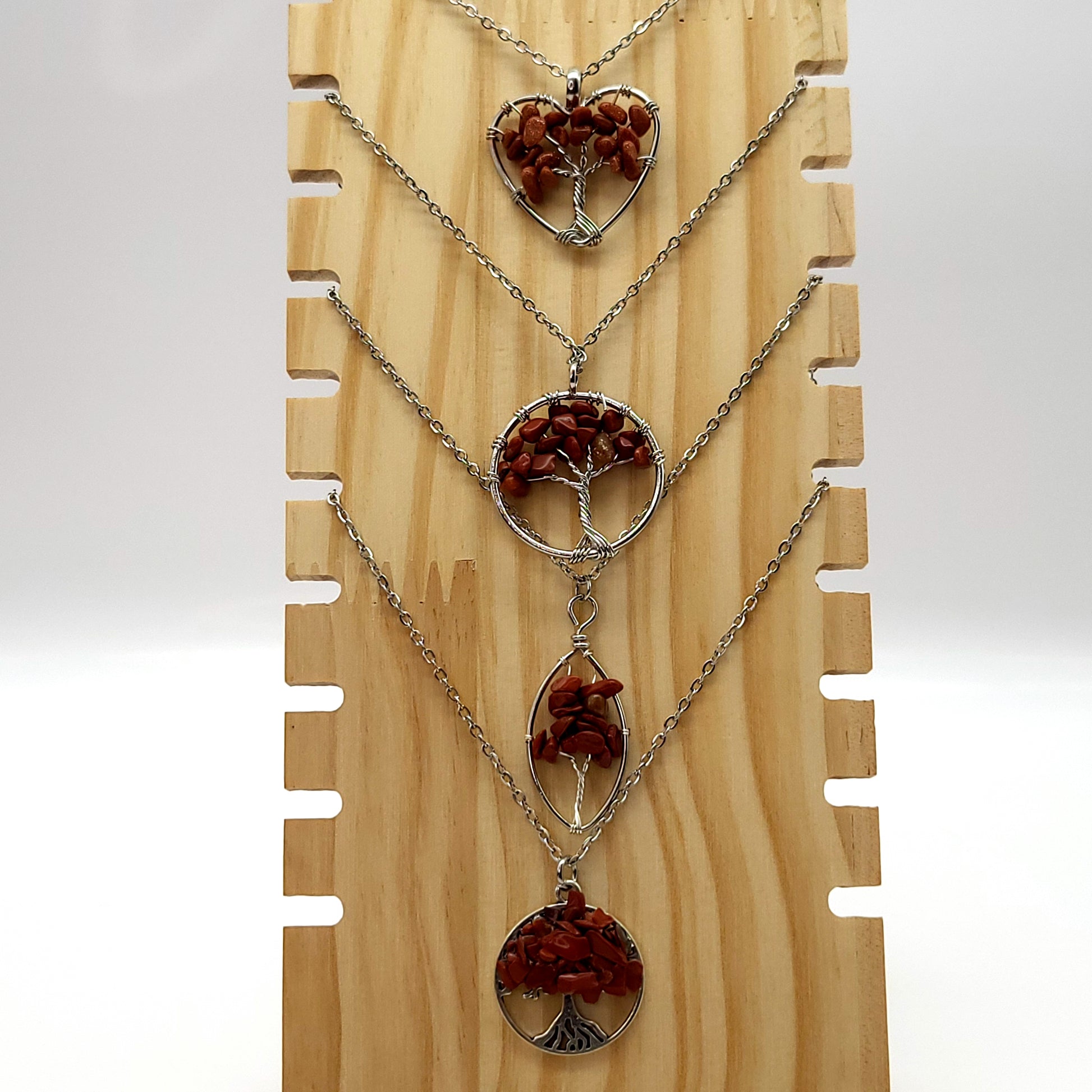 DIVERS COLLIERS + PENDENTIFS ARBRES DE VIE EN PIERRE JASPE ROUGE -BIJOUX ARTISANAUX, UNIQUES & ORIGINAUX