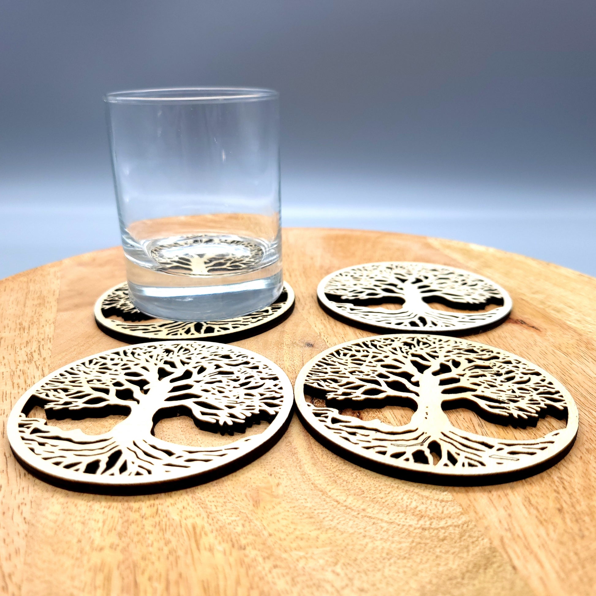 Personnalisez et protégez votre table avec l'élégance de ce LOT ARTISANAL de 4 DESSOUS de VERRES forme " ARBRE DE VIE " : 2 VERSIONS AU CHOIX TRÈS DIFFÉRENTES (A ou B). Ils sont à la fois pratiques, originaux et d'une beauté naturelle.