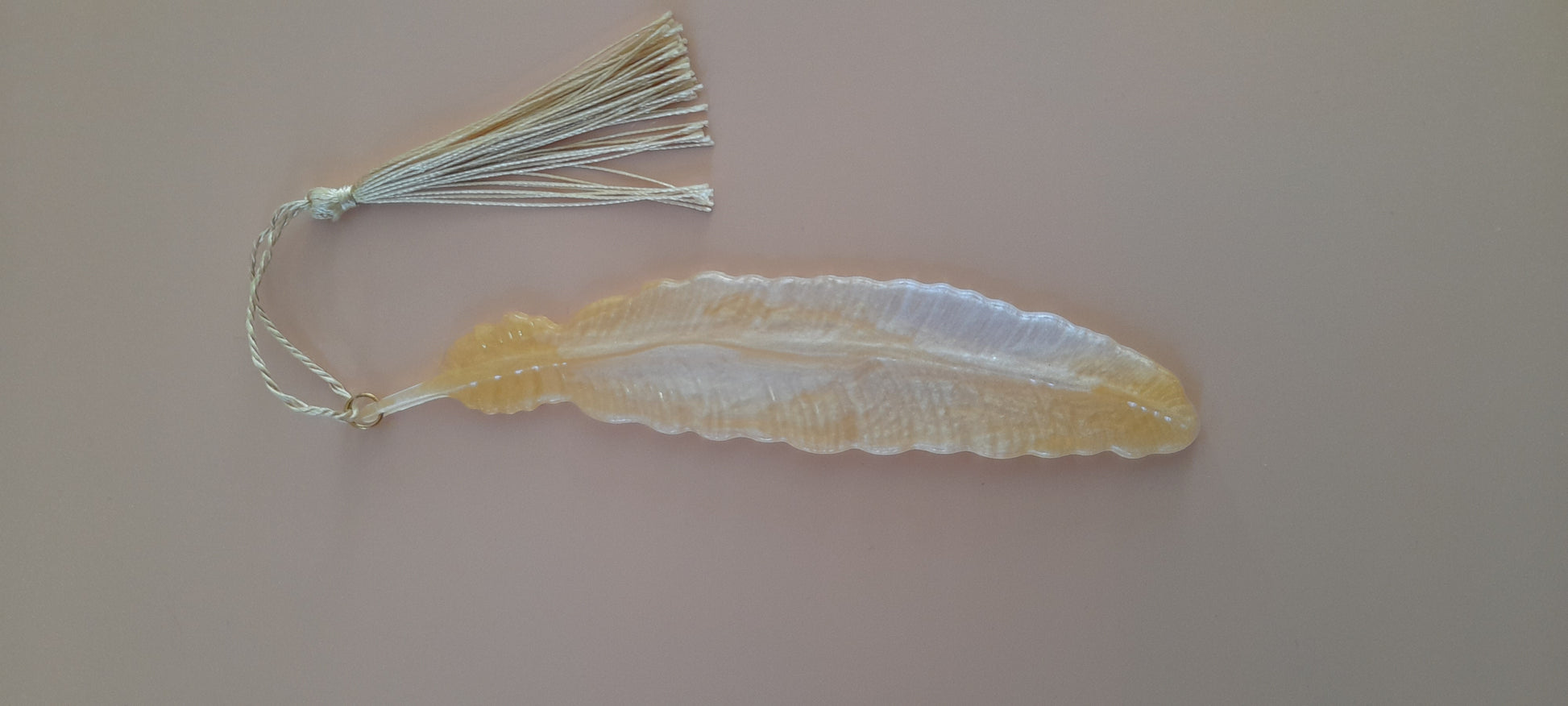 Apportez une touche de fantaisie personnelle à vos conférences en adoptant l'un de ces magnifiques MARQUE-PAGES UNIQUES. Voici le modèle LONGUE PLUME, avec des reliefs...dignes d'une vraie plume !! Elle est reliée à un long pompon « froufrou » (à base de fils) de différentes couleurs (voir photos). VENDUES à L'UNITÉ.
