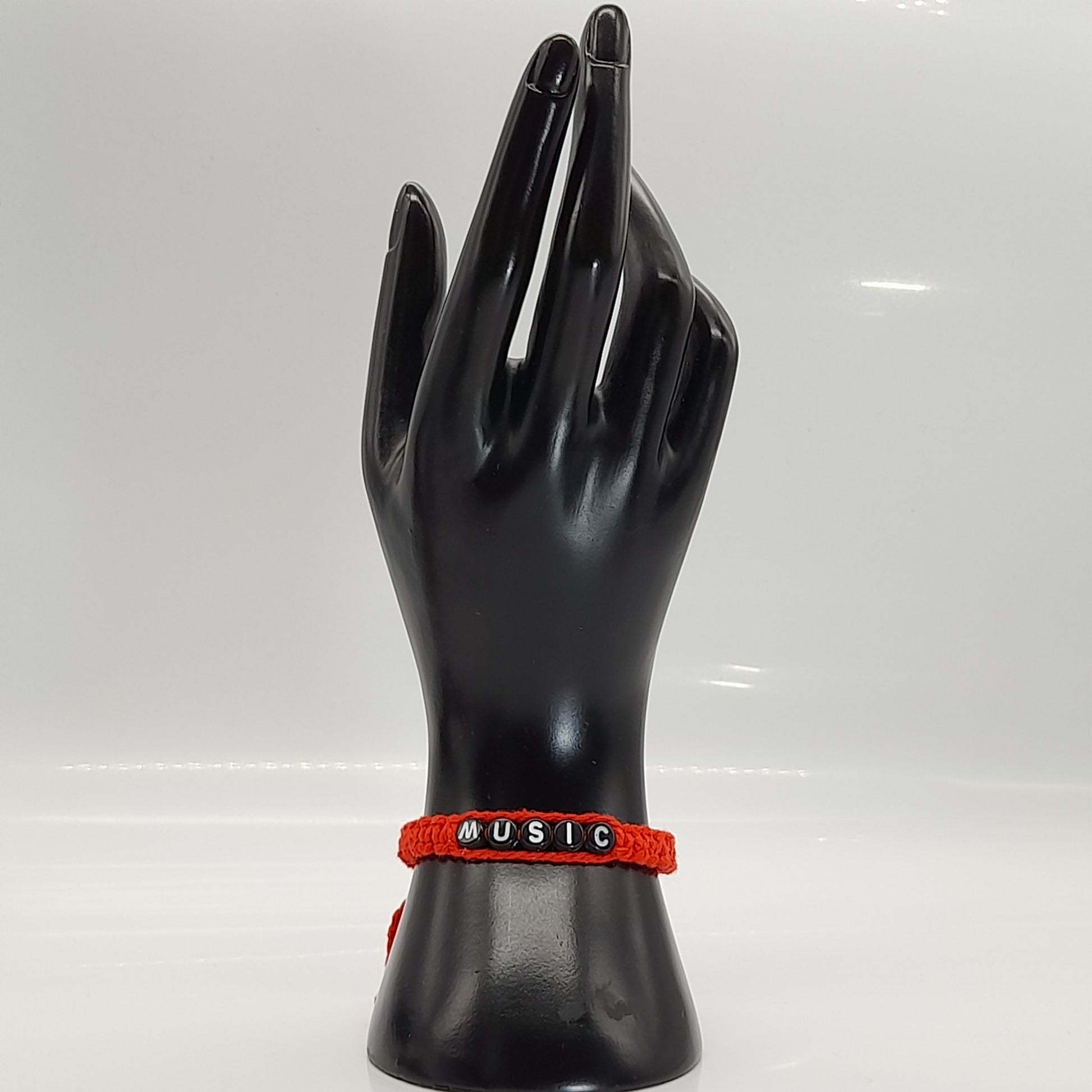 Très sympas ces BRACELETS en MACRAMÉ sont vendus à l’unité. Voici le modèle " MUSIC " sur un bracelet ROUGE, parmi nos « MESSAGES FUNS ». Ils sont composés de perles gravées des lettres de l’alphabet ; le tout ficelé de « nœuds plats ». A choisir parmi des expressions connues et couleurs de macramé, où chacun est mis en valeur et en parfaite harmonie. Il est mixte et lavable.
