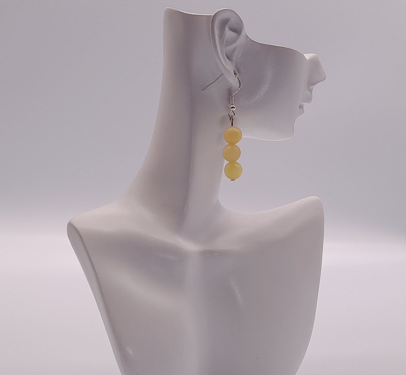 Adoptez ces jolies BOUCLES D'OREILLES de PERLES RONDES en PIERRE NATURELLE SEMI-PRÉCIEUSE de CALCITE JAUNE, aux nuances brillantes et semi opaques. Elles sont composées de 3 PERLES RONDES pour créer douceur et harmonie. Et si ça vous dit, ce modèle est idéal pour se marier avec nos chaines à perles ici et ou bracelets là du même style !